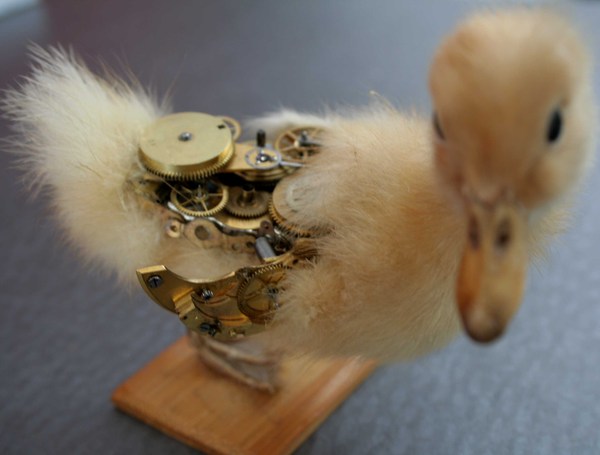 The duckling is a really uncomfortable piece. There’s something very challenging about the intrusion of human-crafted mechanisms into biological processes. The clockwork cog has become a potent icon for every machine, and the duckling is a particularly strong incarnation of animal-as-innocent with all the emotions that generates, so the juxtaposition here is particularly potent.