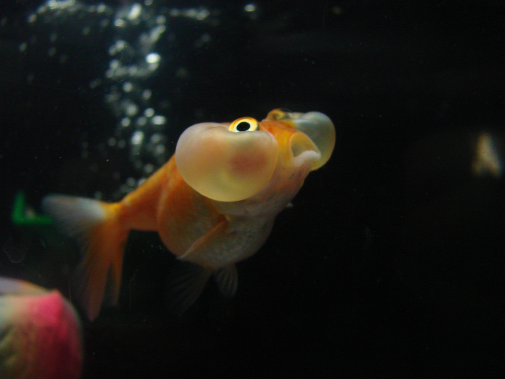 Here’s what I’m not okay with: the the numerous creepy hybrids of goldfish that have been created over the past several centuries. Looking at them in the pet shop (the closest I’ll ever get to one), my heart goes out to them. Their swimming is laboured, with jerky movements that seem more like wrything than locomotion. Their bloated bellies make them look dropseyed, in need of a good dose of antibiotics. They say viewing goldfish in a tank is supposed to lower your blood pressure. These give me the metabolic effect of a triple shot latté.