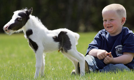 Pictured above is Einstein, the world’s smallest horse. Despite, to my eye, looking a little odd (is it just the photo or is his head slightly too big?) in the horse genome is still the vestage of Hyracotherium, the tiny ‘proto-horse’ of the middle Eocene, about 45 million years ago. I’m not going to rush out and buy a knee-high pony (I’d rather own a dog), but essentially I’m okay with it.