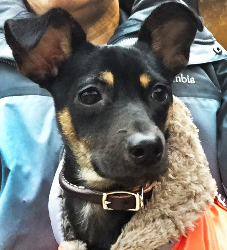 About two weeks ago the level of activity in my household was added to significantly by the addition of a miniature pinscher, Electra. She’s 5 months old, incredibly friendly and relatively non-destructive. This photo taken at the pet shop makes her look the size of a shepherd, but in fact she’s not much bigger than the rats her breed was developed to hunt. So far, we’re very happy.