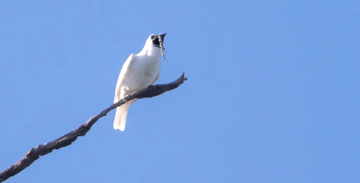 Information on the diet of the White Bellbird has is relatively scant. Eating exclusively fruit, the White Bellbird plays an important ecological role in seed dispersal. Many plant species rely on their seeds passing through the gut of a bird to remove a protective coating and, in some cases, like mistletoe, birds and have evolved a complex co-evolutionary relationship, of benefit to both. Whether this tight-knit relationship exists for the Bellbird, or whether it’s a generalist, consuming anything available, hasn’t been recorded. (Of course, if you have a PhD on this topic, let me know.)
